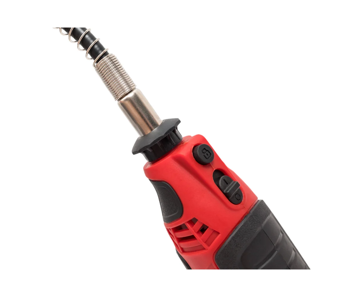 Гравер оснащен щеточным двигателем и роторным принципом действия, что обеспечивает стабильную работу без ударов.
