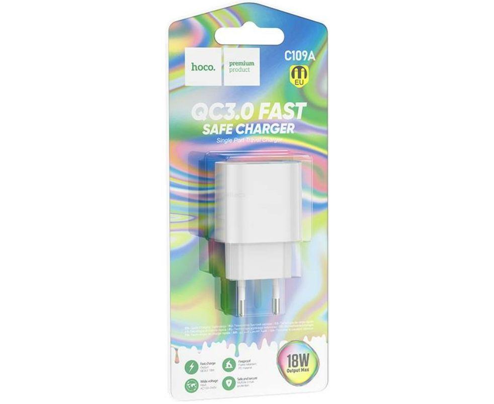 Сетевое зарядное устройство HOCO C109A / QC 3.0/ 1 USB/ Выход: 18W/ Белый