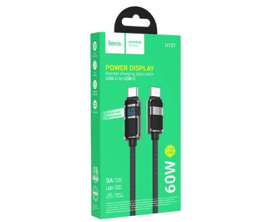 Кабель HOCO U137/ PD с дисплеем Type-C-Type-C/ 1.2m/ 3A/60W/ Нейлон/ Черный
