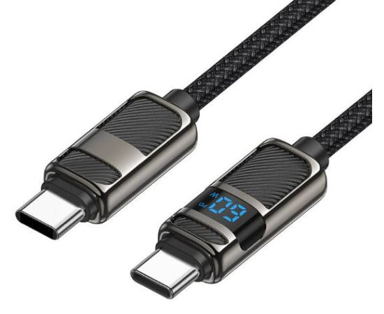 Кабель HOCO U137/ PD с дисплеем Type-C -Type-C/ 1.2m/ 3A/60W/ Нейлон/ Черный