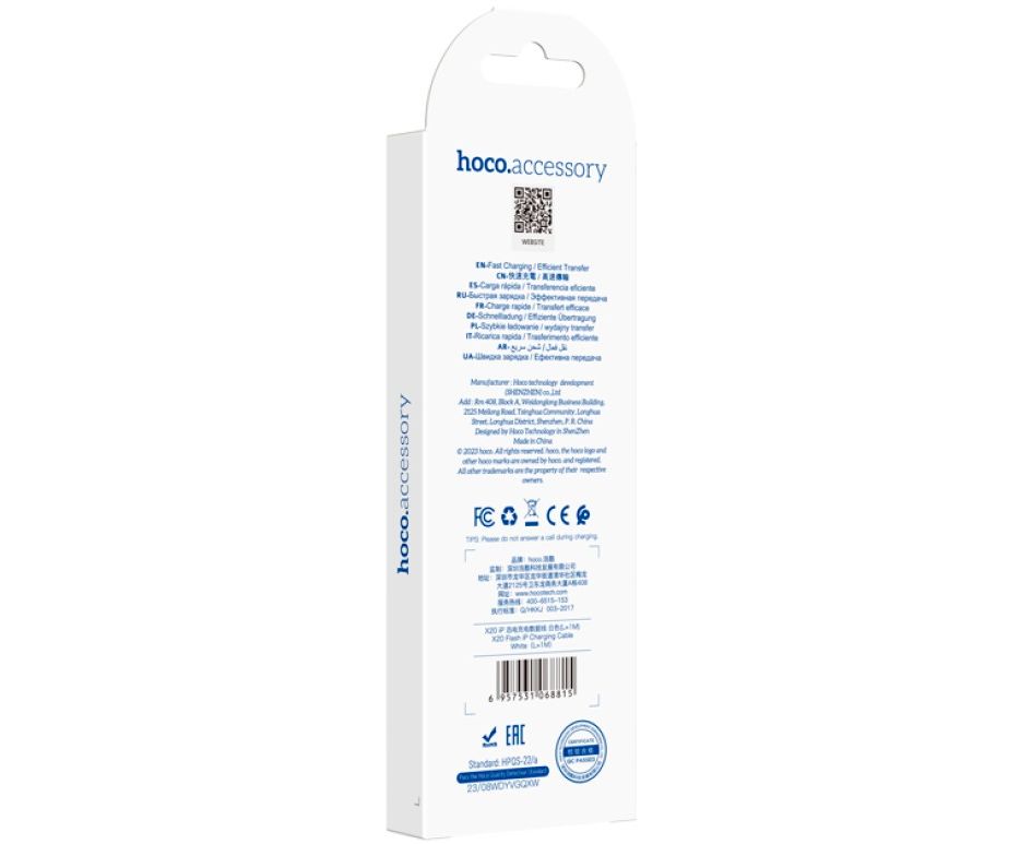 Кабель HOCO X20/ USB Lightning/ 1m/ 2A/ Белый