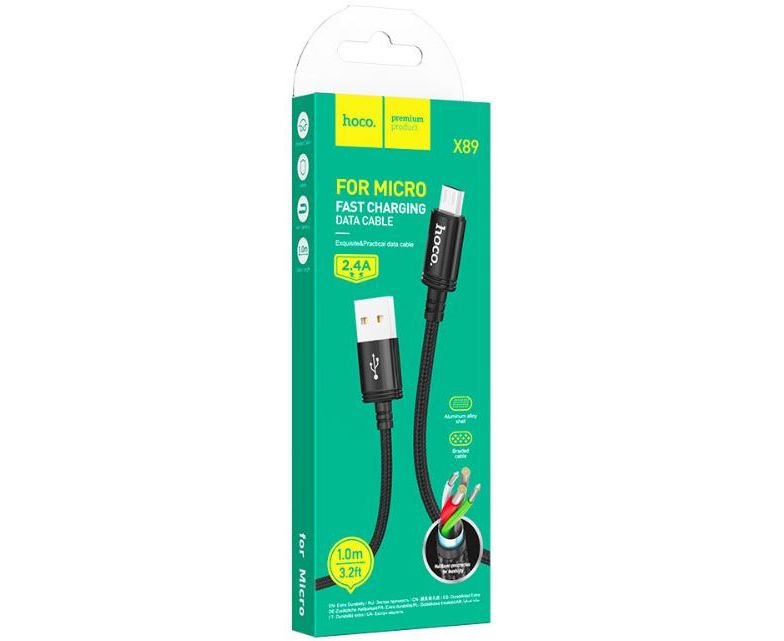 Кабель HOCO X89/ USB Micro/ 1m/ 2,4A/ Черный
