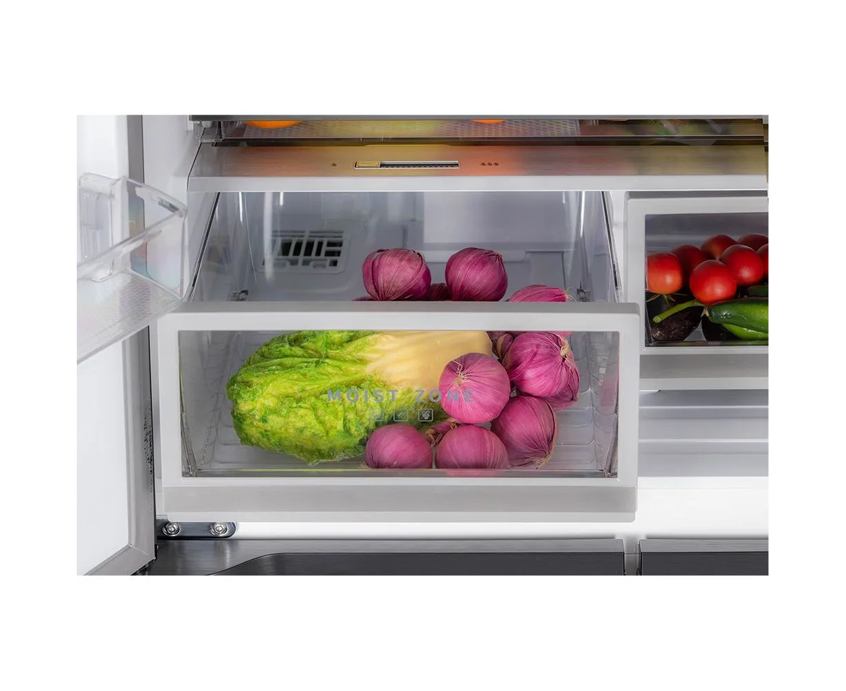 Особенности холодильника: Full No Frost, Антибактериальное покрытие камеры, Дисплей, Зона свежести, Светодиодная подсветка, Система контроля влажности, Скрытые ручки, Суперзаморозка, Суперохлаждение