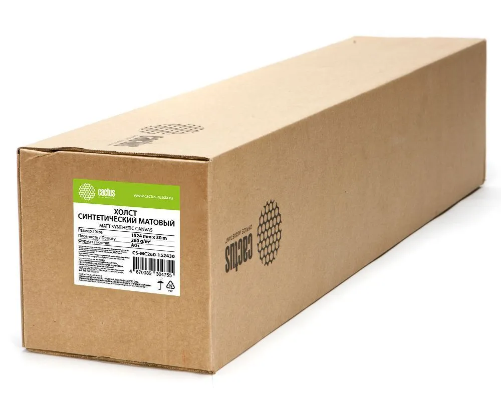 Холст Cactus CS-MC260-152430 A0+ 1524мм-30м/260г/м2/белый матовое синтетика для струйной печати