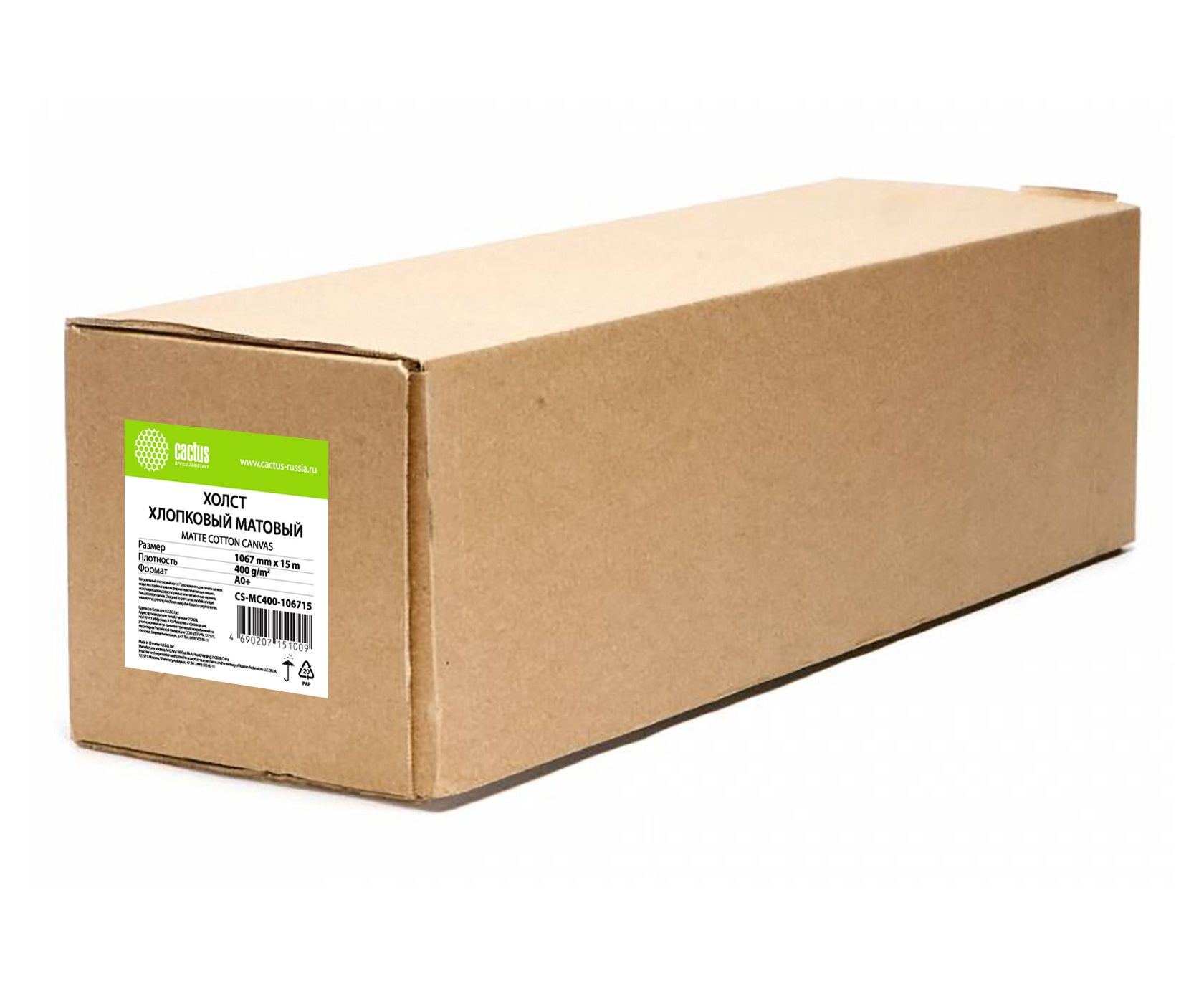 Холст Cactus CS-MC400-106715 42" A0+ 1067мм-15м/400г/м2/белый хлопок для струйной печати втулка 50.8мм 2"