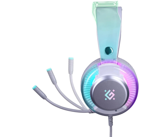 Игровая гарнитура DEFENDER Glitch белый, RGB, провод 2 м 62490