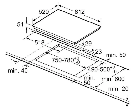 Размеры ниши для встраивания (ШхГ), см