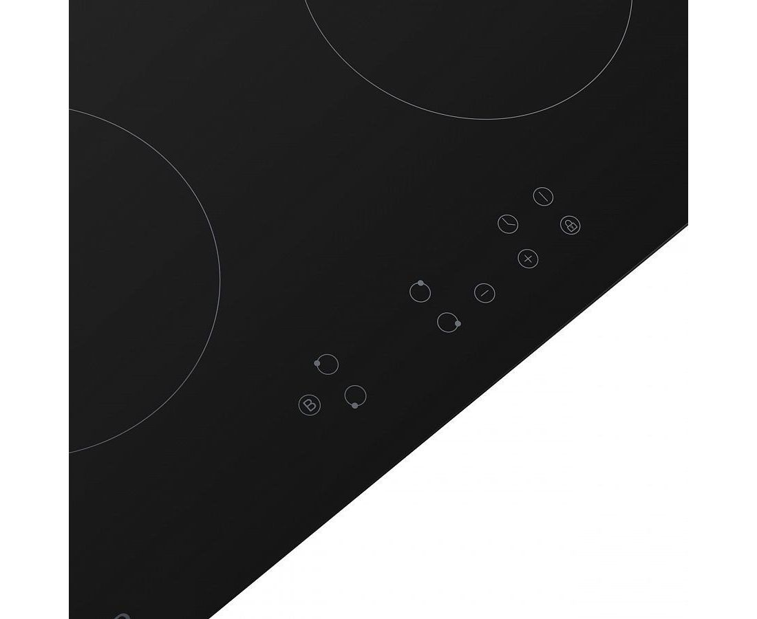 Сделана из стеклокерамики, практичный материал, смотрится хорошо и легко мыть, не остается царапин. Есть таймер конфорок, можно заблокировать панель.