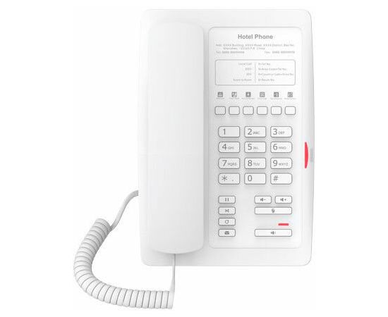 IP- телефон Fanvil H3 white – создан специально для отелей, предъявляющих высокие требования к телефонной инфраструктуре и качеству сервиса. Поддерживает до 2-х SIP-аккаунтов, питание PoE, аудио HD качества. На телефоне 10 программных клавиш, операционная система на базе Vxworks, поддержка защищённых протоколов: SIP over TLS и SRTP, совместимость с большинством платформ для IP-телефонии: 3CX, Asterisk, Broadsoft, Elastix, Zycoo, и др.