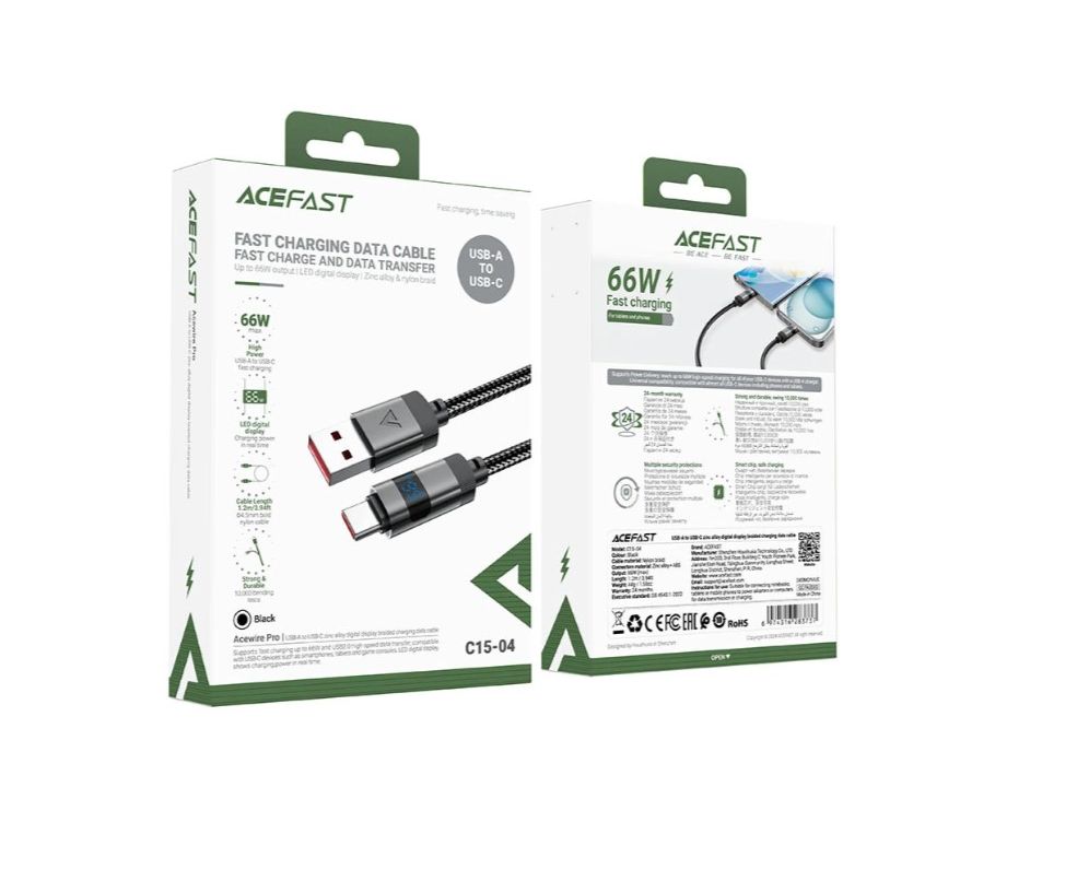 Дата-кабель ACEFAST AF-C15-04-BK USB-A To USB-C Zinc Alloy Digital Display Braided Charging Data Cable Black