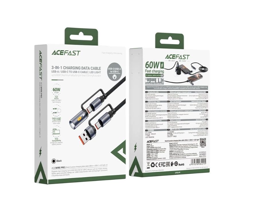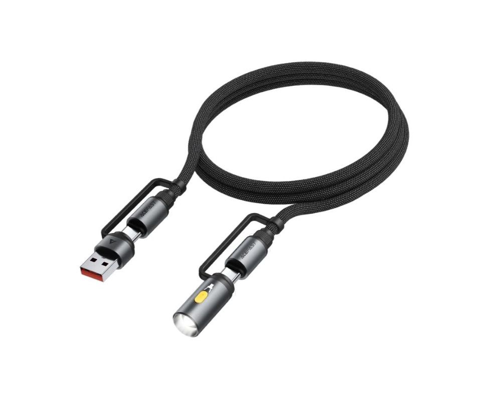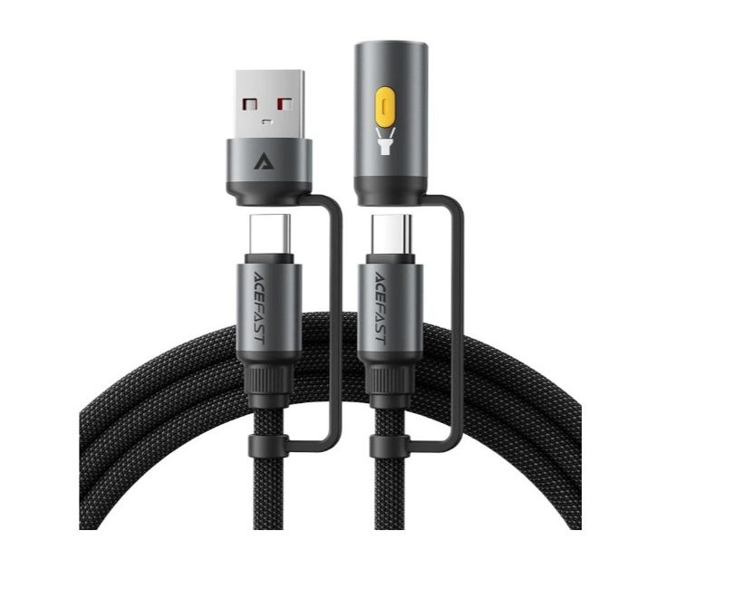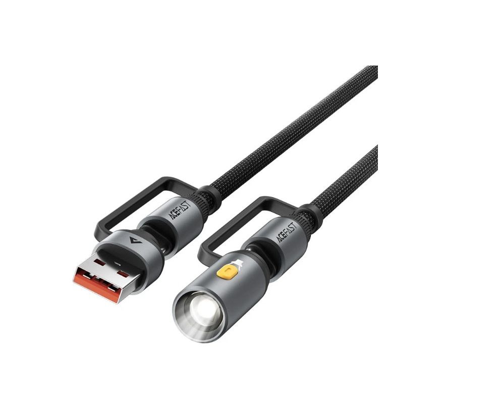 Дата-кабель ACEFAST AF-J5-BK Multi-Function Charging Data Cable USB-A+ USB-C+ Led Light Black