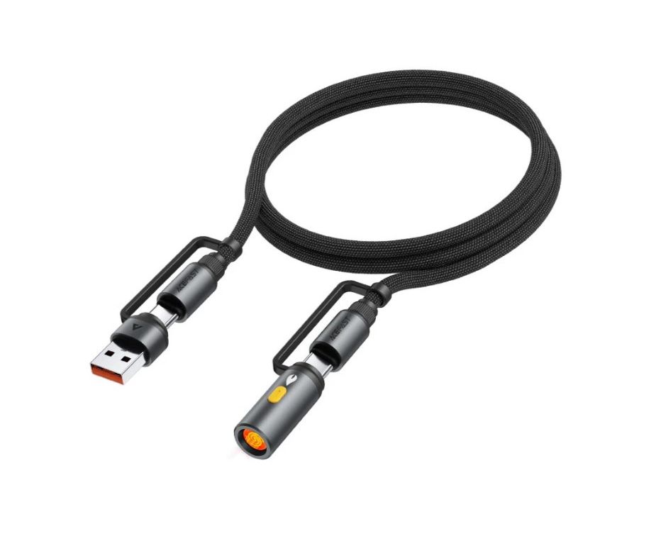 Дата-кабель ACEFAST J6 Multi-Function Charging Data Cable USB-A+ USB-C+ Cigarette Lighter с коннектором в прикуриватель. черный