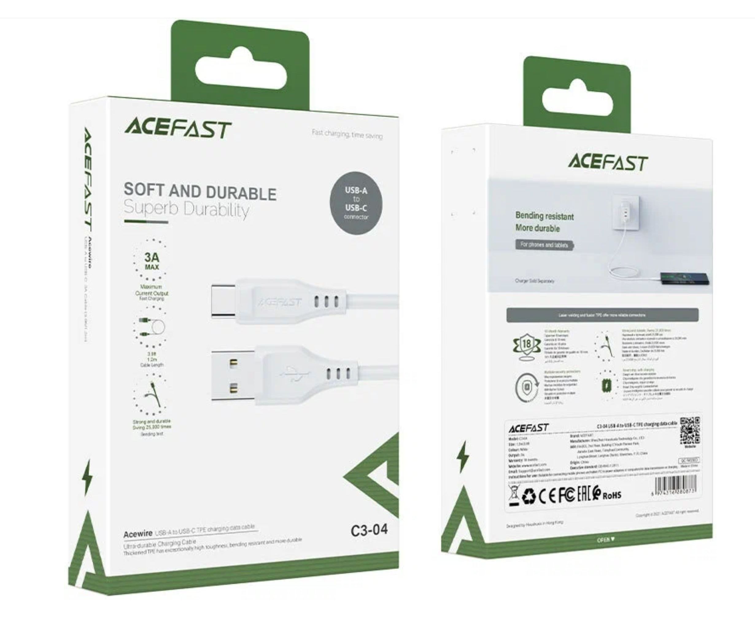 Дата-кабель ACEFAST C3-04 Type-C TPE, 1.2m (белый)