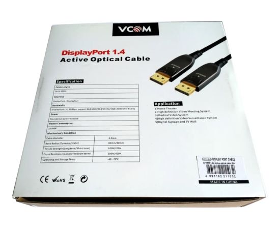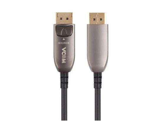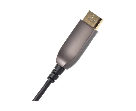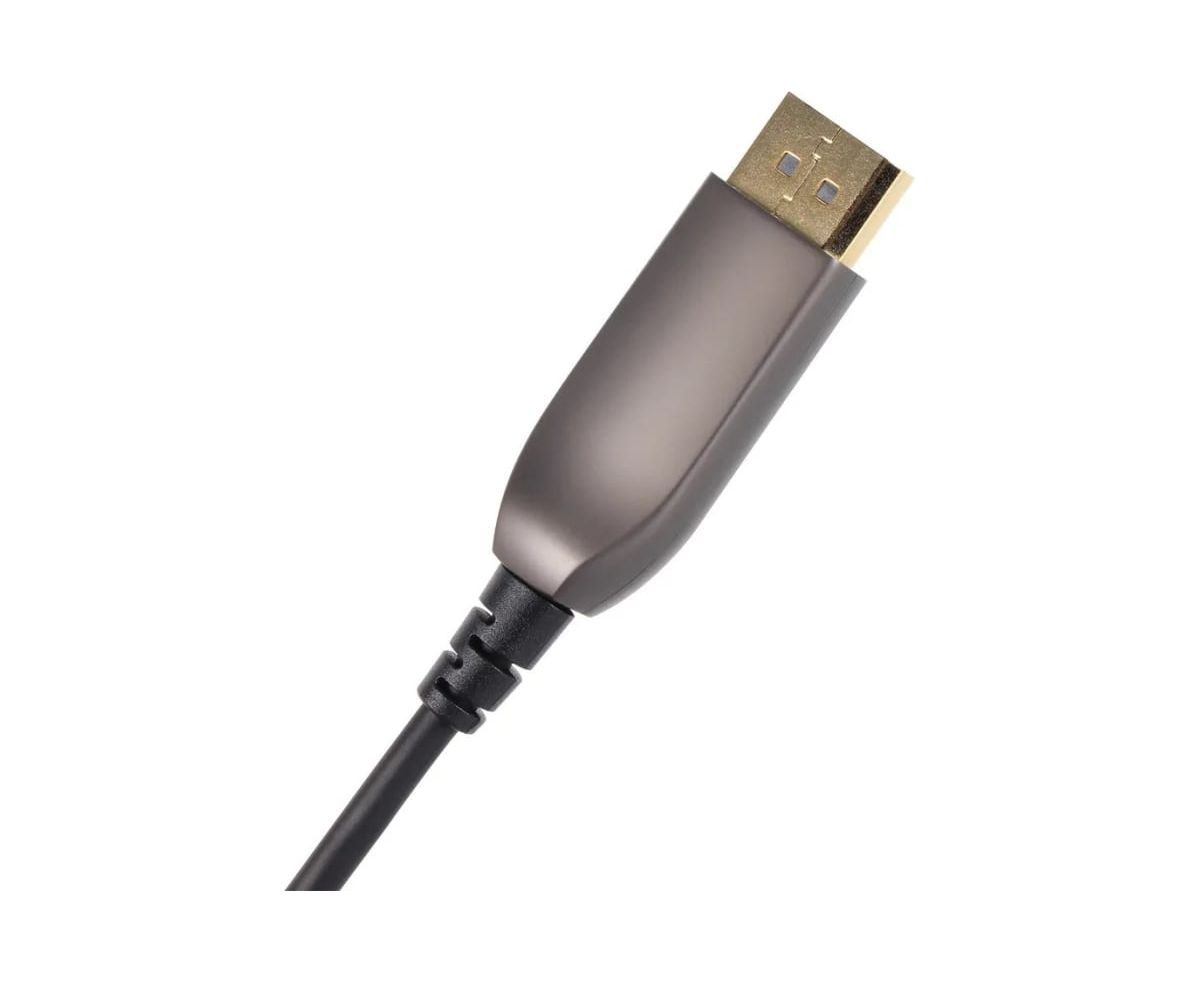 Высокоскоростной активный оптический кабель DisplayPort версии 1.4 применяется для соединения компьютеров, Blue-Ray и DVD плейеров, игровых консолей, видео и фото камер с телевизорами, мониторами, видео проекторами и предназначен для передачи аудио и видео сигнала
