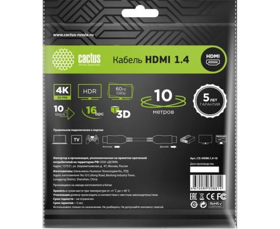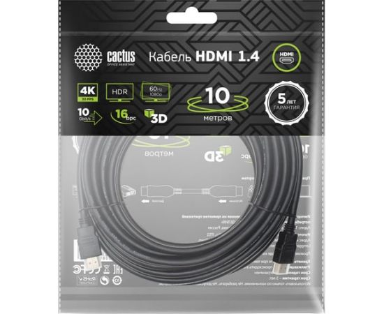 Кабель аудио-видео Cactus CS-HDMI.1.4-10 HDMI (m)/HDMI (m) 10м черный