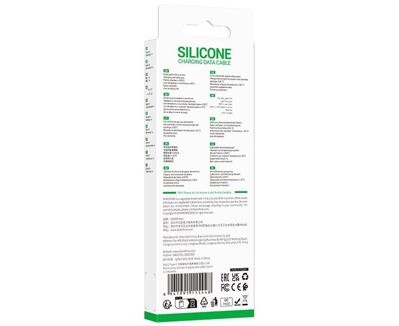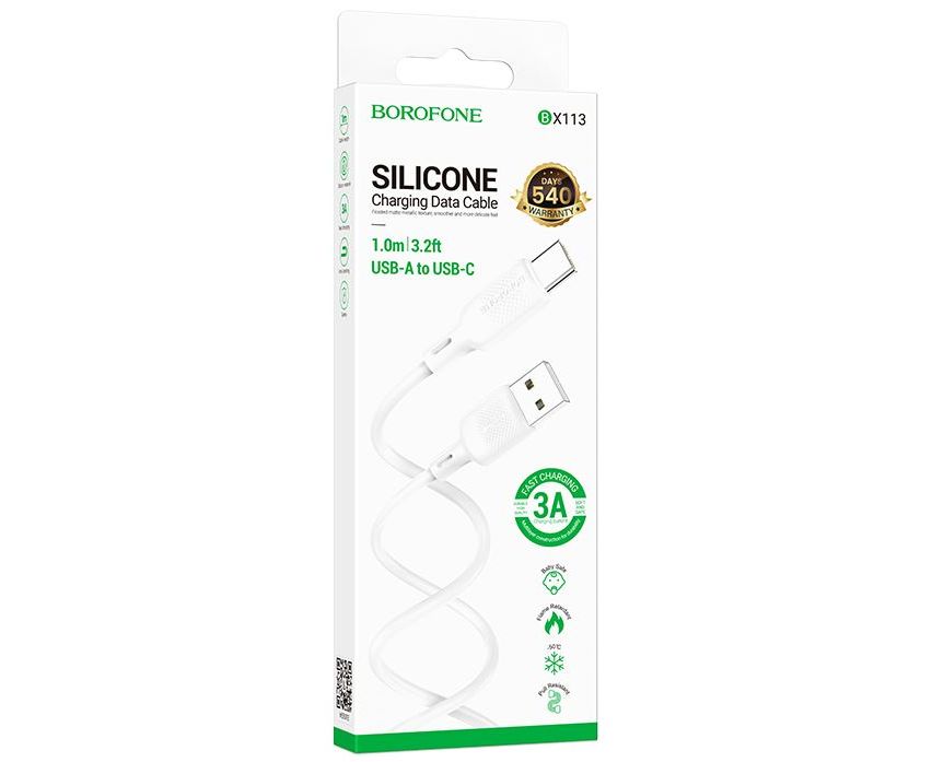 Кабель BOROFONE BX113/ USB Type-C/ 1m/ 3A/ Силикон/ Белый