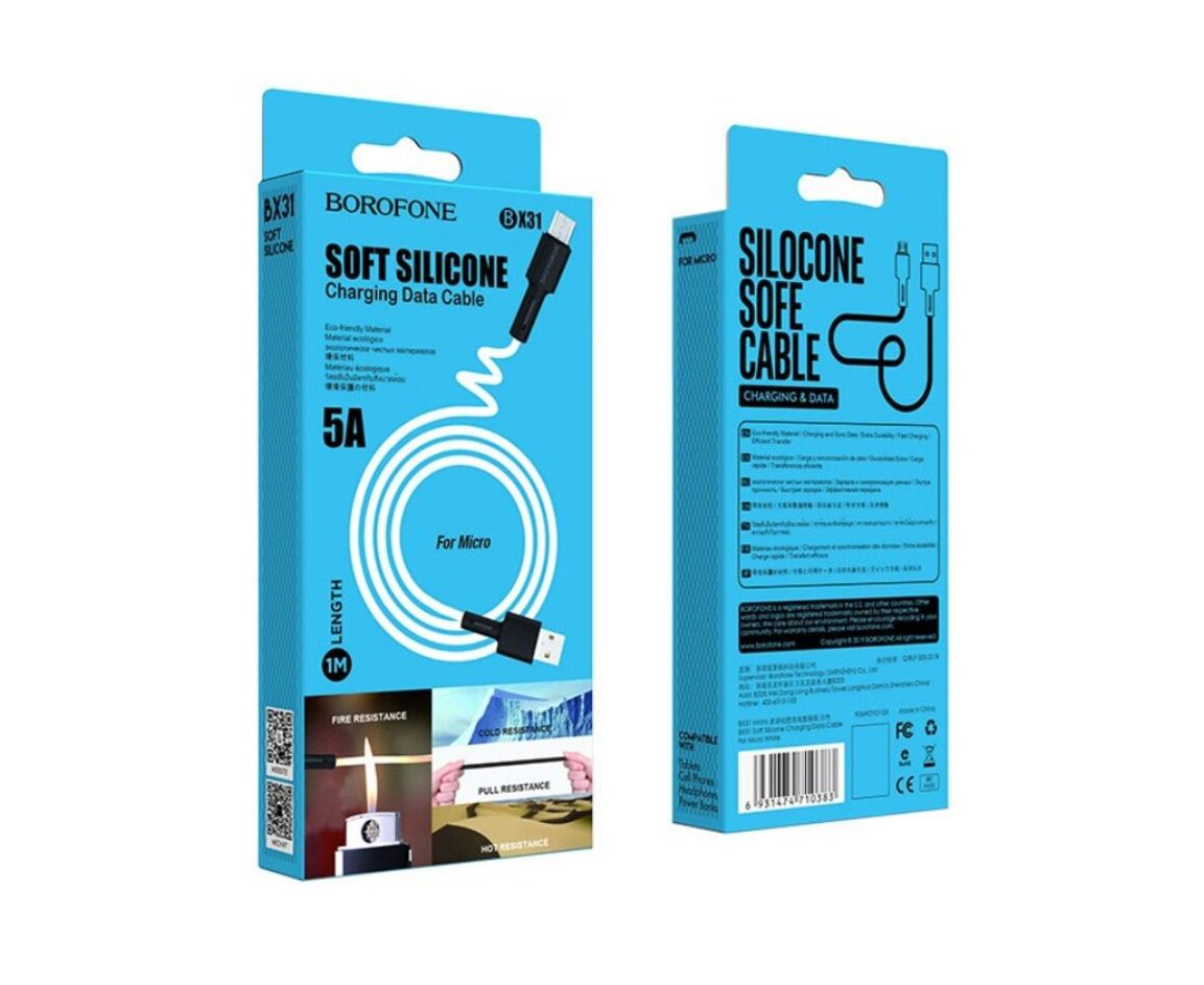 Кабель BOROFONE BX31 Soft silicone charging data cable for Micro white