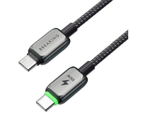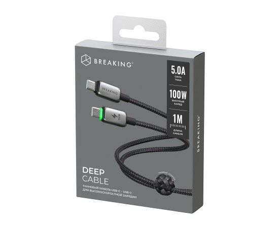 Кабель Breaking Deep USB-C - USB-C, 100W, 5.0A, LED индикатор, 1м (Графит)