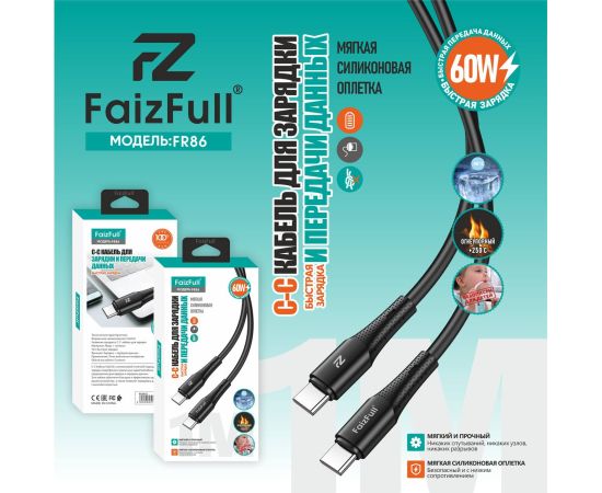 Кабель FaizFull FR84 Type-C to Type-C Silicone 60Вт 1м Черный