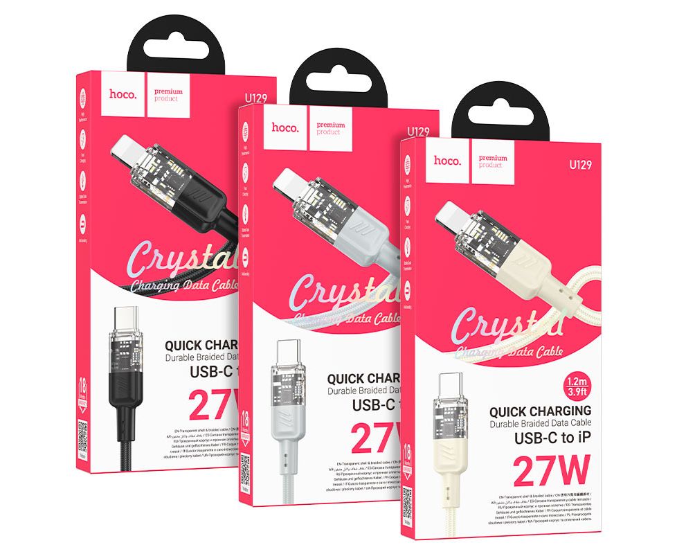 U129 Spirit, Type-C на iP зарядный дата кабель, поддержка быстрой зарядки PD 27W, нейлоновая оплётка, длина – 1.2м