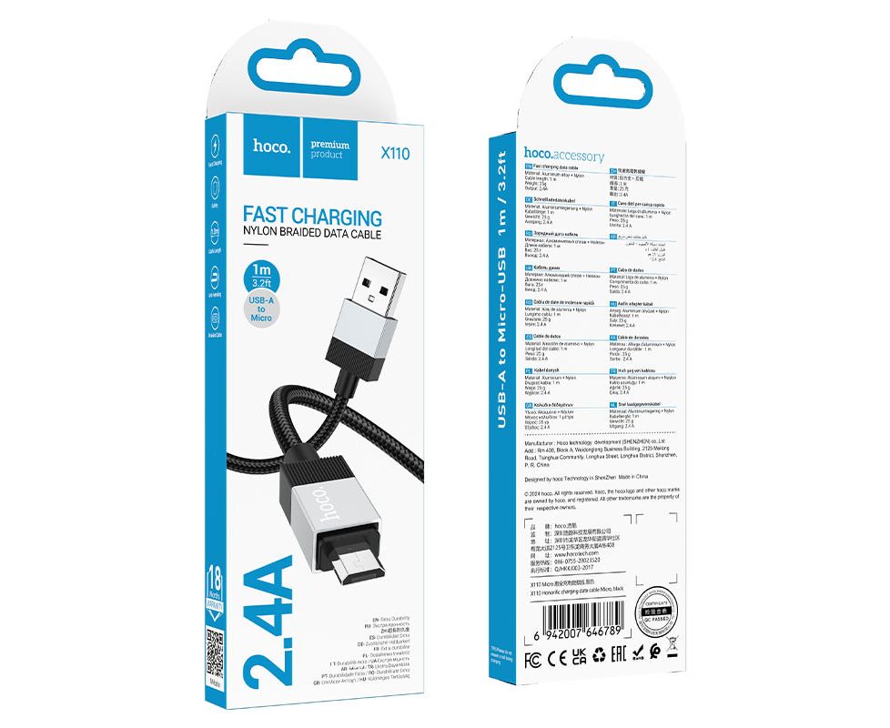 X110 Honorific, кабель для передачи данных от USB к Micro-USB, ток до 2,4 А, нейлоновая оплетка, разъемы из алюминиевого сплава, длина – 1 м