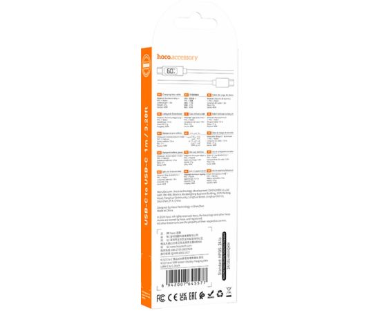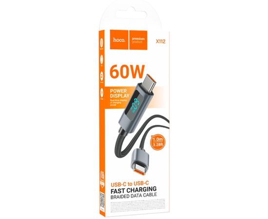 Кабель HOCO X112/ PD с дисплеем Type-C-Type-C/ 1m/ 3A/60W/ Черный