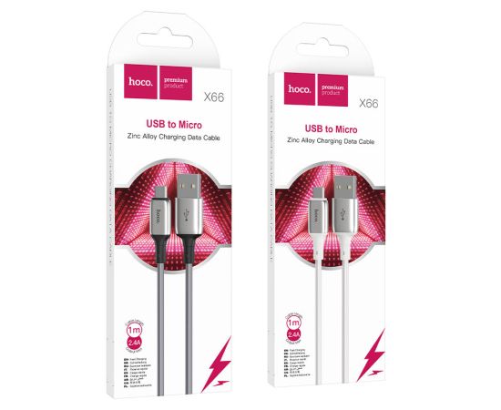 X66 Howdy, USB на Micro-USB кабель для зарядки и передачи данных, 1м, коннекторы из цинкового сплава, матовая оплетка из TPE, ток до 2.4A