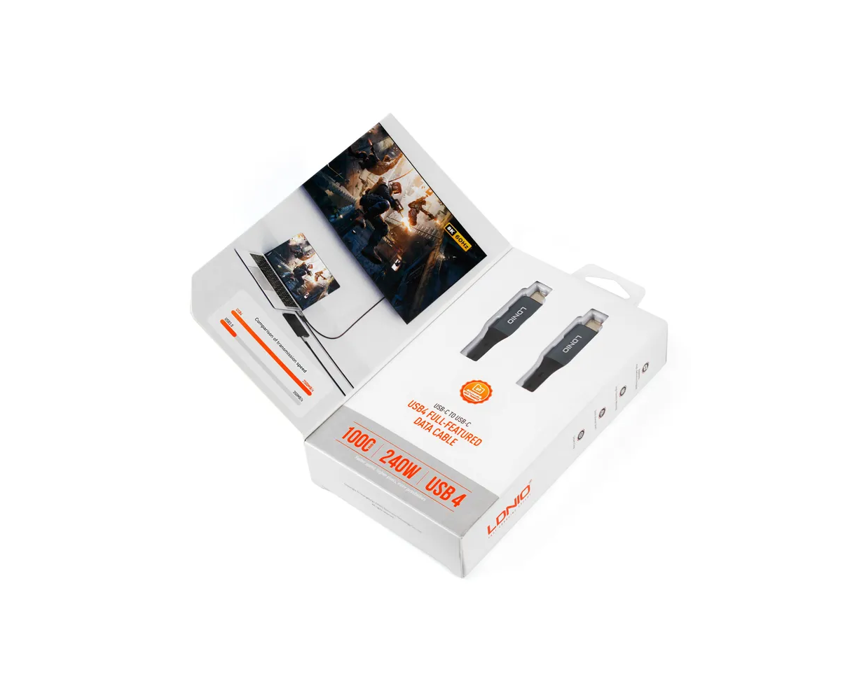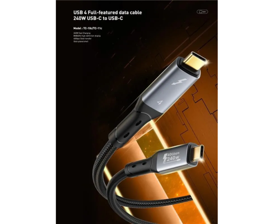 Этот современный кабель обеспечивает сверхбыструю зарядку устройств до 240 Вт, а также передачу данных со скоростью до 40 Гбит/с, идеален для работы с крупными объемами контента. Подходит для всех устройств с разъемом Type-C: смартфоны, планшеты, ноутбуки и даже внешние дисплеи Full HD / 8K.