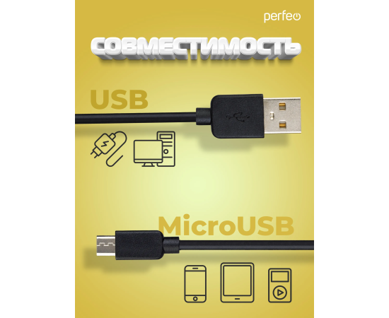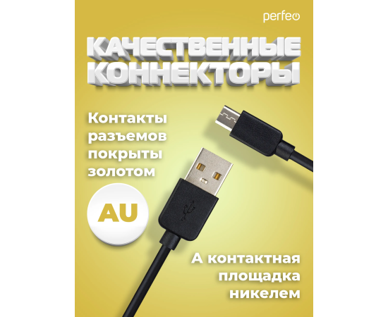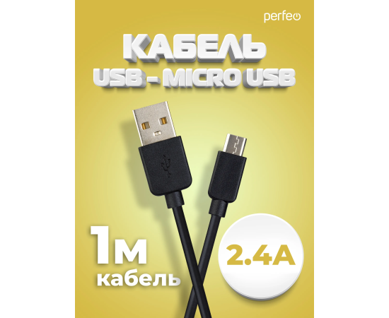 Кабель PERFEO USB A вилка - Micro USB вилка, 2.4A, черный, длина 1 м., Micro ONE (U4006)