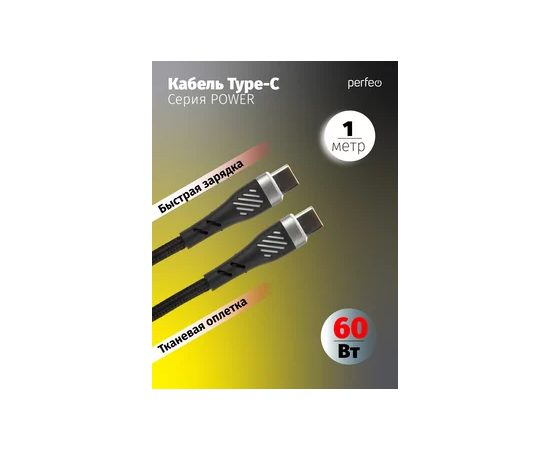 Кабель PERFEO USB C вилка - C вилка, 60W, черный, длина 1 м., POWER (C1105)