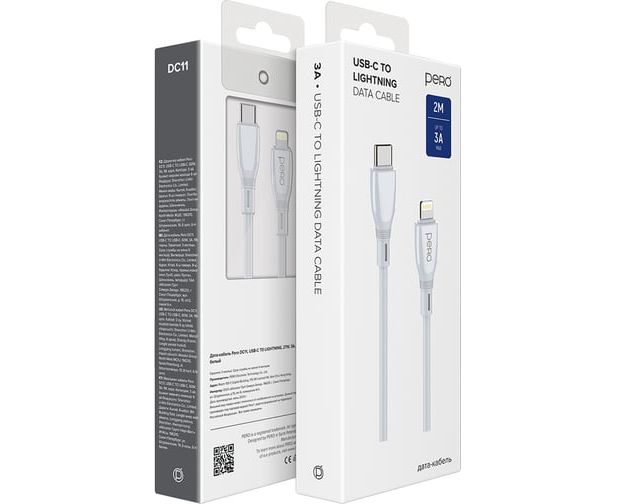 Кабель PERO DC11 PD Type-C to Lightning, 27W, 2m, White