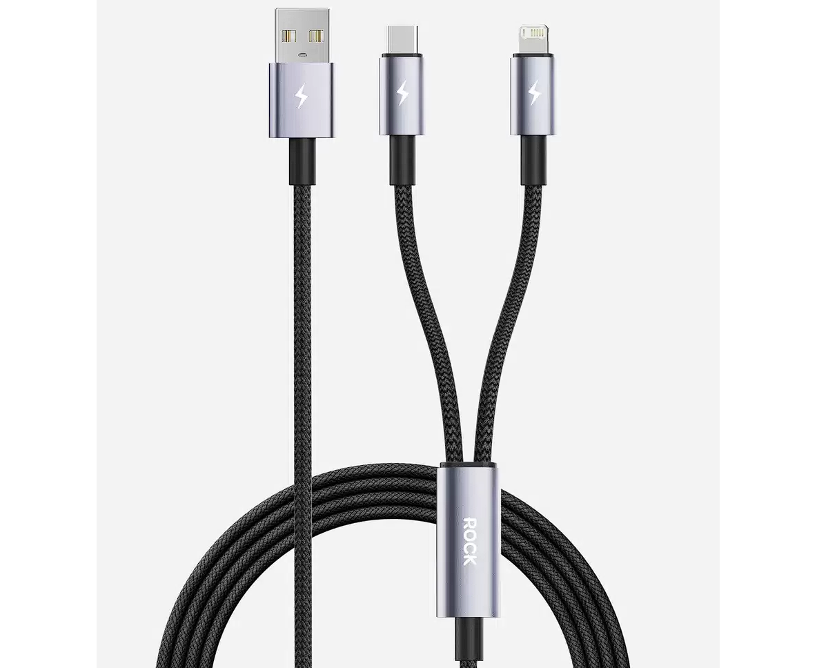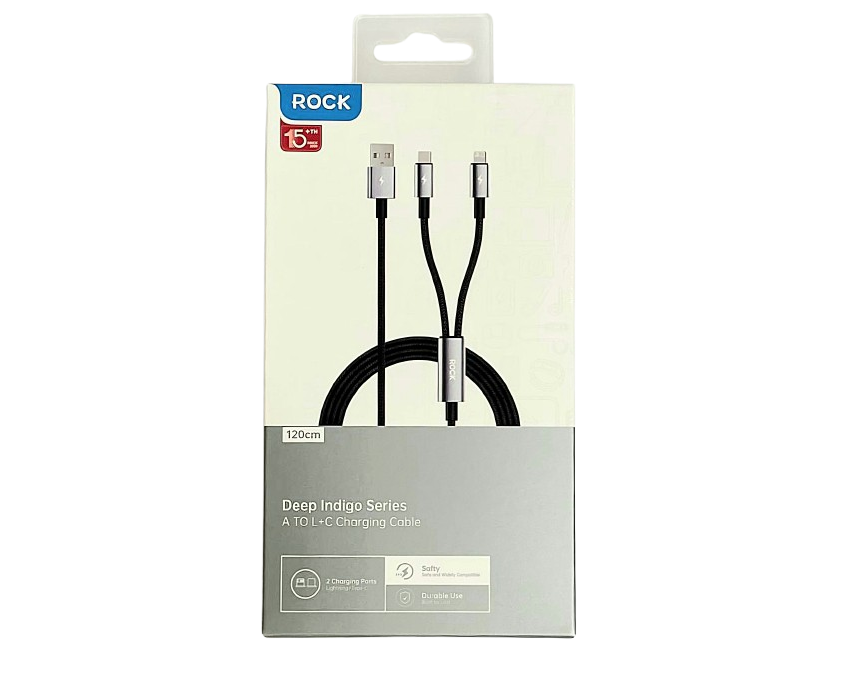 Кабель ROCK 2в1 Deep Indigo Type-C + Lightning Nylon 2.4A 1.2м Черный