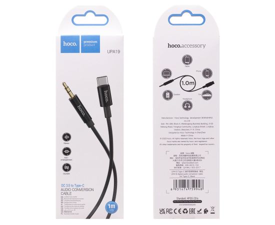 Кабель Type-C - 3.5mm Hoco UPA19 100см (black) (215762)