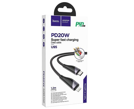 Кабель Type-C - Apple lightning Hoco U95 120см 3A (black) (127828)