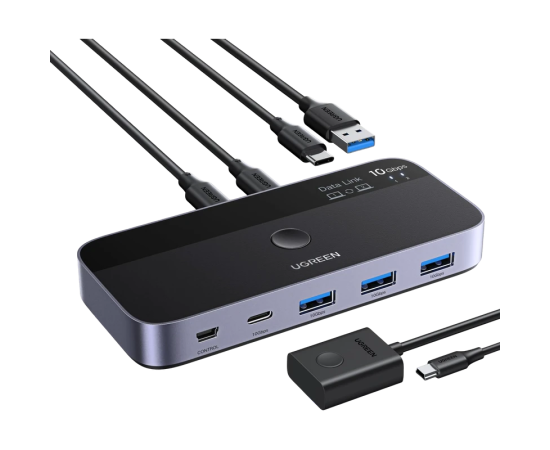 Переключатель UGREEN CM691 (45784) 3*USB-C&1*Mini USB&3*USB-A Sharing Switch 2 In 4 Out. Цвет: серый космос/черный