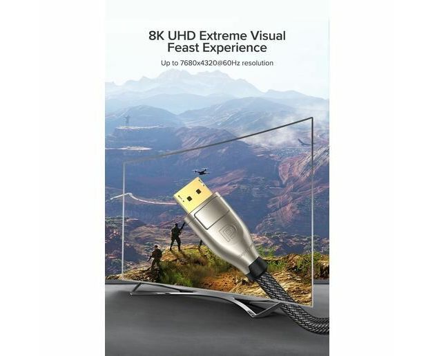 Кабель UGREEN DP112 60842 1.4 DP M/M Round Cable Zinc Alloy Shell with Braided 1m Black