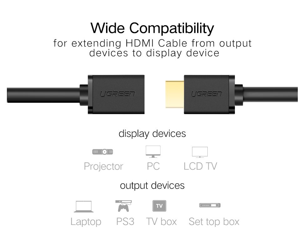 Кабель UGreen HD107 (10141) HDMI Male to Female Cable в оплетке 1 м черный