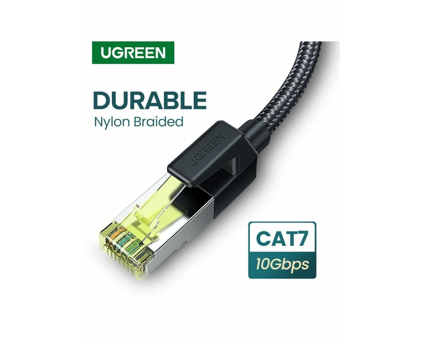 Кабель UGREEN NW150 (80420) CAT7 Shielded Round Cable with Braided Modular Plugs, 0,5м черный