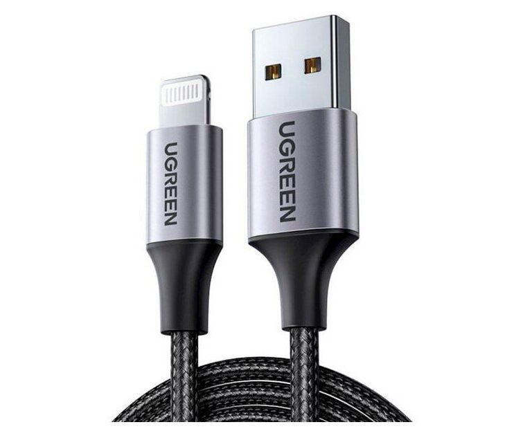 Кабель UGreen US199 (60156) Lightning to USB Cable Alu Case with Braided 1 м черный