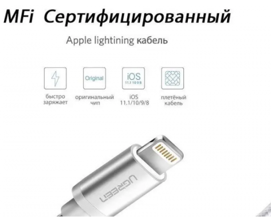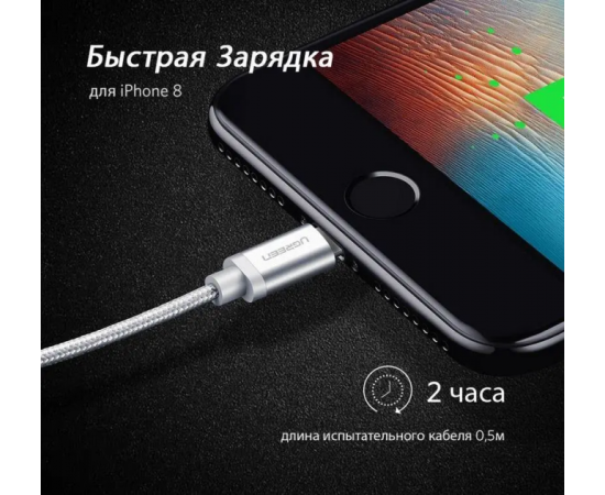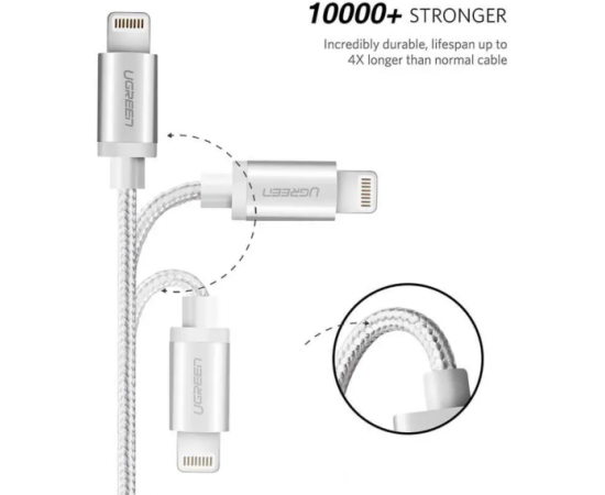 Кабель UGREEN US199 60163 Lightning to USB-A 2.0 Cable 2m Silver