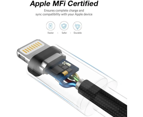 MFi сертифицирован Совместим с iPhone, iPad & iPod 5V/2.4A Скорость до 480 Мбит/с Алюминиевый корпус + нейлоновая оплетка