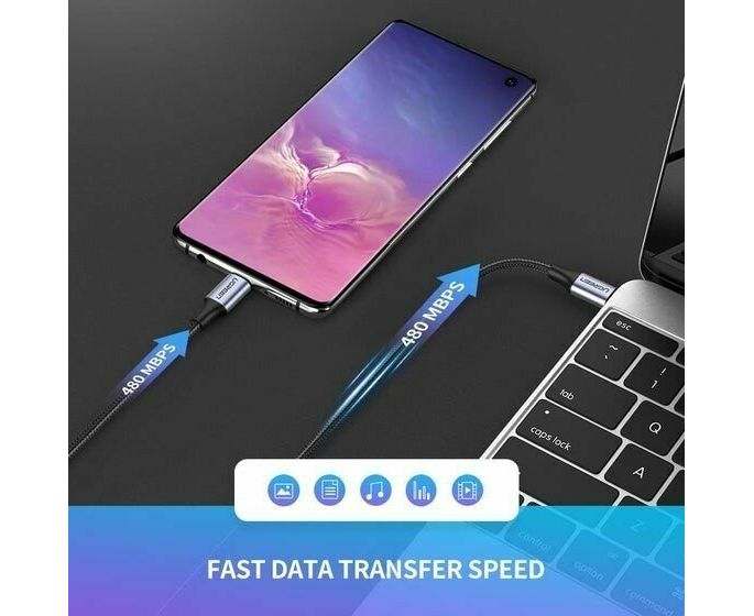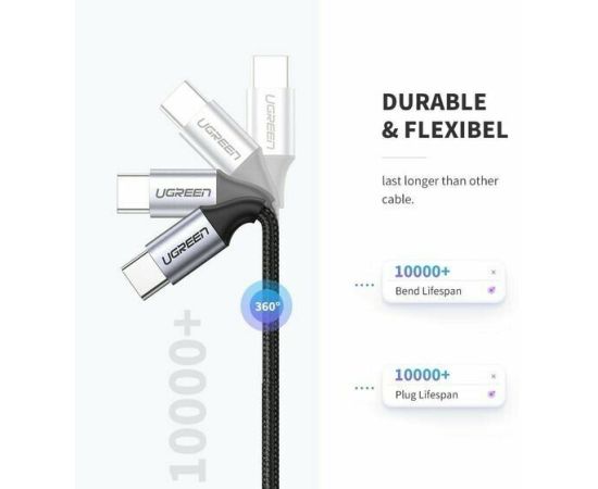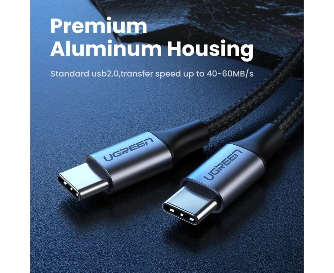 Кабель UGREEN US261 50152 USB 2.0 C M/M Round Cable Nickel Plating Aluminum Shell 2m Gray/Black