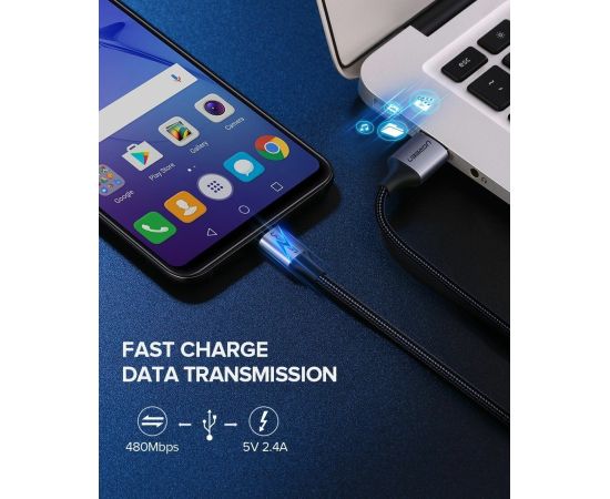 Кабель UGREEN US290 60151 USB 2.0 A to Micro USB Cable Nickel Plating Alu Braid 1m Silver