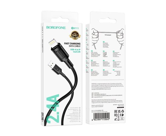Кабель USB - Apple lightning Borofone BX111 Feliz 100см 2,4A (black) (235098)