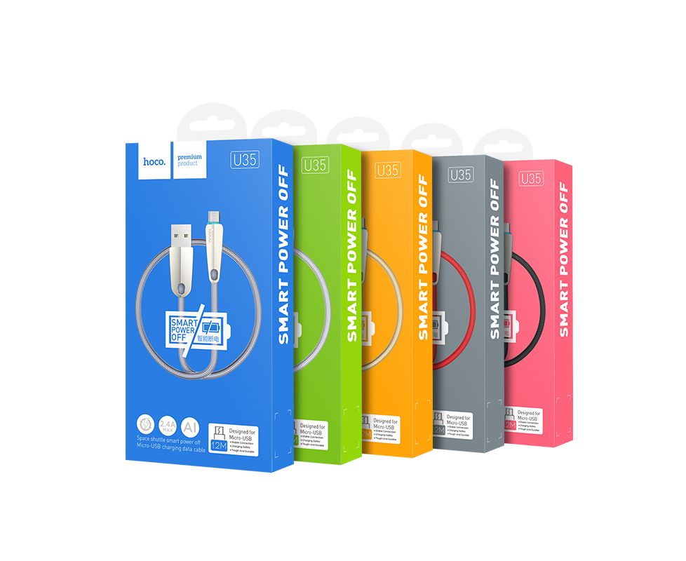 Кабель для зарядки и передачи данных U35 Space shuttle smart power off для устройств с интерфейсом Micro USB, 1,2 м, с мягкой нейлоновой оплеткой, соединения из цинкового сплава