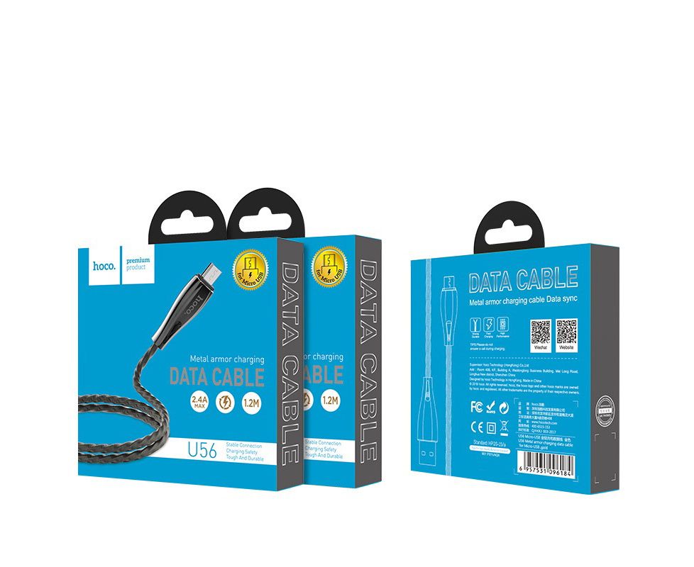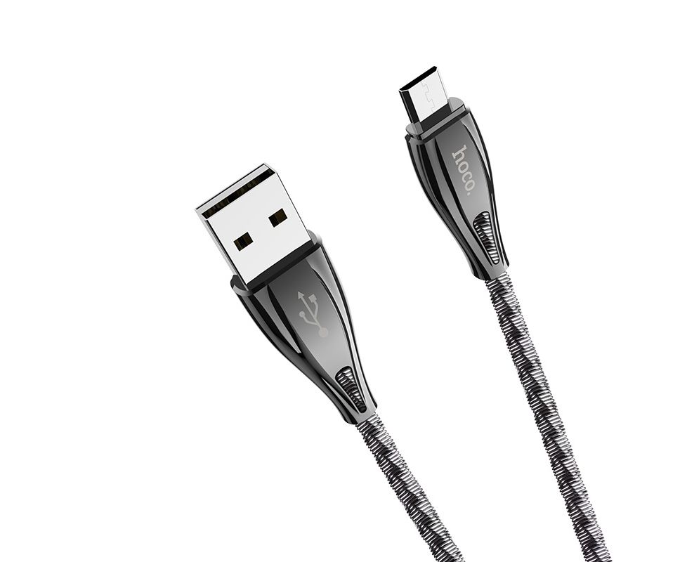 U56 Metal armor кабель для зарядки и передачи данных USB на Micro-USB длина 1.2м ток 2.4А цинковый сплав и оплетка из нержавеющей стали