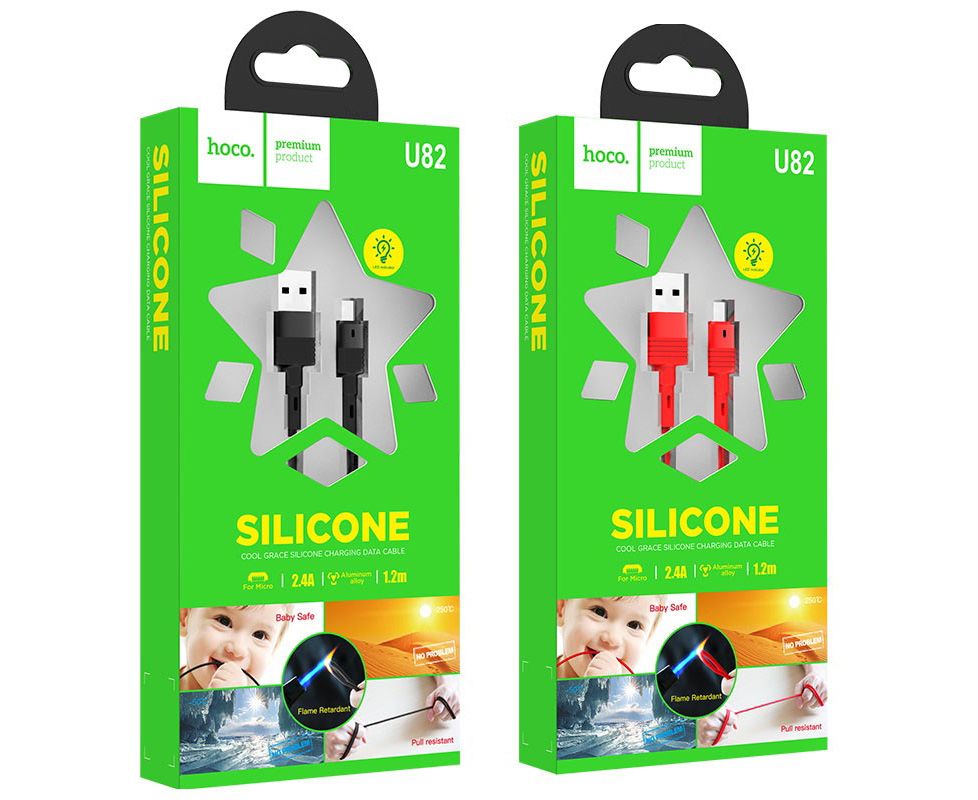 U82 Cool grace кабель для зарядки и передачи данных USB на Micro-USB, 1.2м, оплетка из силикона, ток до 2.4A, с индикатором