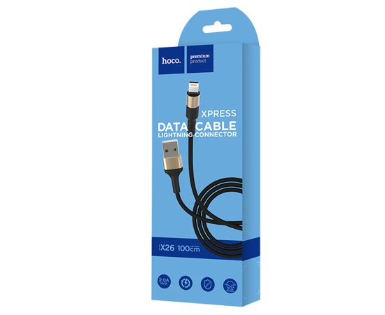 Кабель USB HOCO X26 Xpress USB - Lightning, 2А, 1 м, черный+золотой