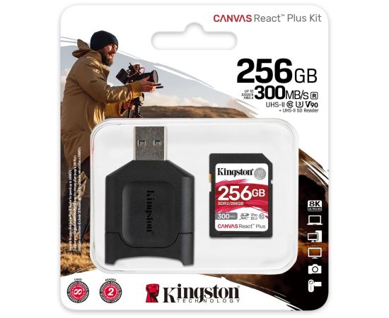 Карта памяти Kingston Canvas React Plus (SDR2/256GB) SDXC 256Gb Class10 w/o adapter
