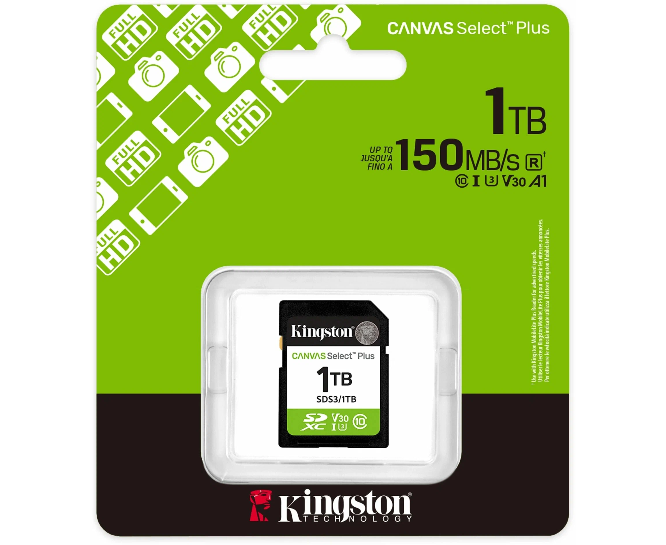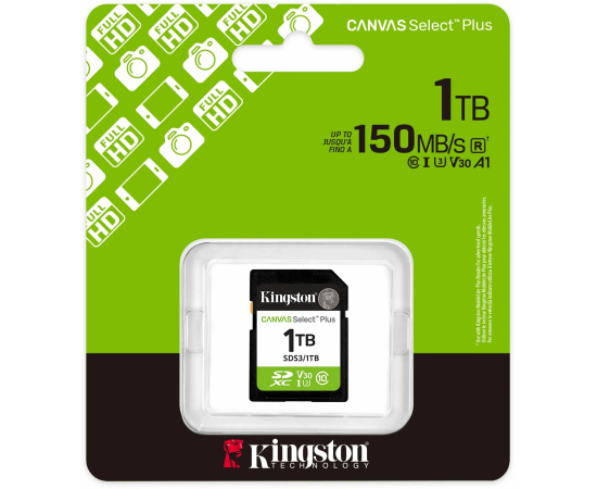 Флеш карта SDXC 1TB Kingston SDS3/1TB Canvas Select Plus V30 w/o adapter имеет широкий спектр преимуществ и характеристик